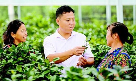 湖北日報訊 8日,陽新縣楓林鎮坳上村生態花卉大棚內,黨員種植大戶柯金昌(中)為精準扶貧戶傳授花卉苗木種植技術。該縣采用“黨建﹢產業發展”模式精準扶貧,引導黨員致富能手在全縣349個村幫助精準扶貧戶脫貧致富。