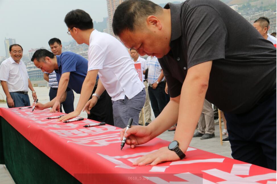 啟動儀式上,縣委宣傳部長宣讀創建綠色發展先行示范區倡議書,與會人員共同參加簽名,出席領導到洪渡烏江河段並調研汙水處理廠。