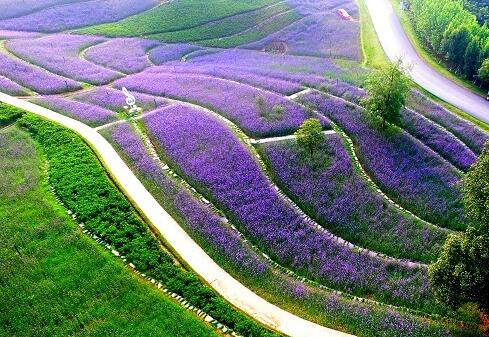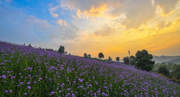 近日,江西省新余市仙女湖凱光亞熱帶植物園百畝馬鞭草花開正艷,在晚霞映照下如夢幻紫色海洋。新華網發 趙春亮 攝