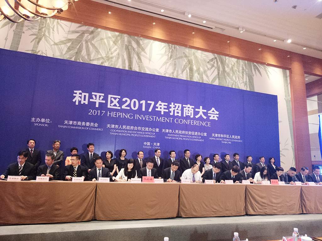 在當日的招商大會上,總部·結算中心·樓宇經濟板塊,蘇寧控股集團與和平區人民政府簽訂合作框架協議,擬落戶北方結算中心、蘇寧財險全國總部和蘇寧保理北方總部,中國民生投資集團產融結合項目、天津津能股份有限公司等一批總部項目簽約。金融類簽約項目有華融資產天津分公司、瑞穗銀行天津分行、北大方正人壽保險天津分公司、陽光人壽保險天津分公司等知名品牌項目。航運類簽約知名項目有日本華和海事和上港物流天津分公司。此外,還有天津廣電寬帶科技股份有限公司、美國風洞項目、環球兄弟股份有限公司、慈銘奧亞健康管理醫院和北方人才培訓中心等一些知名品牌參加簽約。