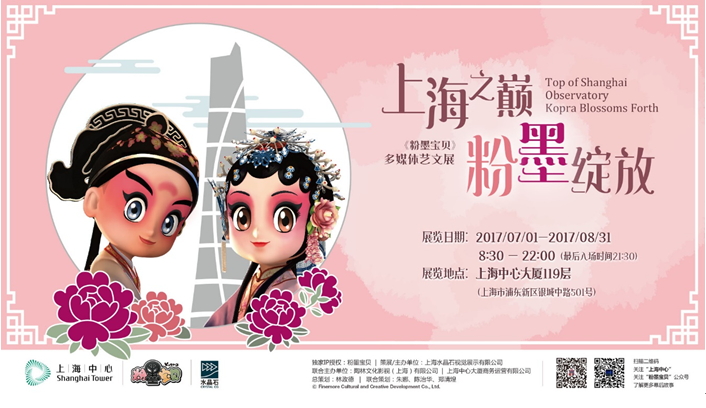 上海中心大廈位於上海浦東陸家嘴金融貿易區,總高度632米,是中國第一高樓,世界第二高樓,是一座綠色、智慧、人文的垂直城市。上海之巔觀光廳向公眾開放以來一直致力於打造文化旅遊特色。為了不斷提升各國友人觀摩體驗,豐富觀光內涵,繼《雲間桃花源》、《上海智造》特展後,上海中心聯合由著名漫畫家林政德帶領的陶林文化創作團隊,以及本次展覽的策展團隊——打造上海世博會中國館“清明上河圖”的上海水晶石視覺展示團隊,以現代建築融入傳統文化新美學的獨特角度,在上海之巔觀光廳119層舉辦《粉墨寶貝》上海中心多媒體藝文展,展期從7月1日至8月31日,希望前來上海之巔的遊客可以進一步閱讀現代地標建築、了解上海、通觀世界,感受到傳統文化的無限魅力。