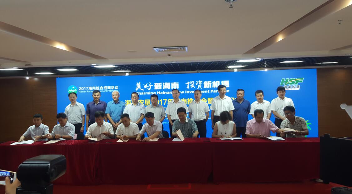 【香港商報網訊】記者趙啟東、陳娟、吳軍暉報道:6月27日上午,海南省農墾投資控股集團2017年招商推介暨簽約儀式在海墾國際金融中心舉行。此次招商推介會邀請到海航集團、恒大集團、萬科集團、中青旅控股股份有限公司、泰康保險、遼寧正業集團等135家客商企業200餘人參加,共簽約項目26個,投資總額202億元。海南省委副書記李軍出席並致辭。