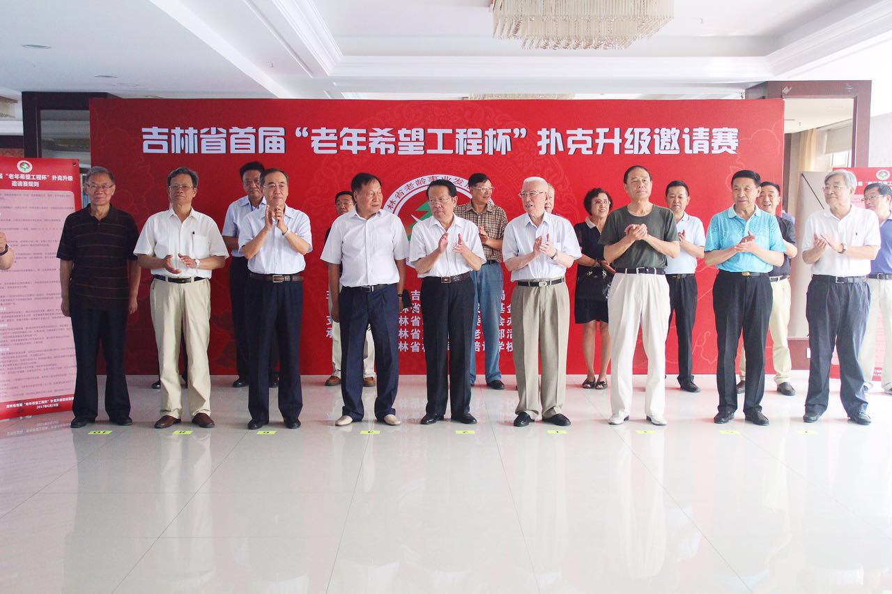 吉林省委原书记王云坤,省级老领导冯锡铭、任俊杰、聂文权、高文、赵家治、刘润璞、张福才、索维东出席了开幕式并参加比赛。省委老干部局副局长谭龙、省老金会副理事长魏立昌、勾铁兵,秘书长孙国兴、省老龄办机关党总支专职副书记刘伟、30余名参赛的省直机关离退休厅局长,以及各市州代表队近300人出席开幕式。在开幕式上省老金会副理事长魏立昌向来宾发表了致辞,省委老干部局副局长谭龙宣读了“升级”比赛规则,最后随着省老金会理事长刘润璞同志宣布比赛开幕的话音一落,吉林省首届“老年希望工程杯”扑克“升级”邀请赛正式开始。