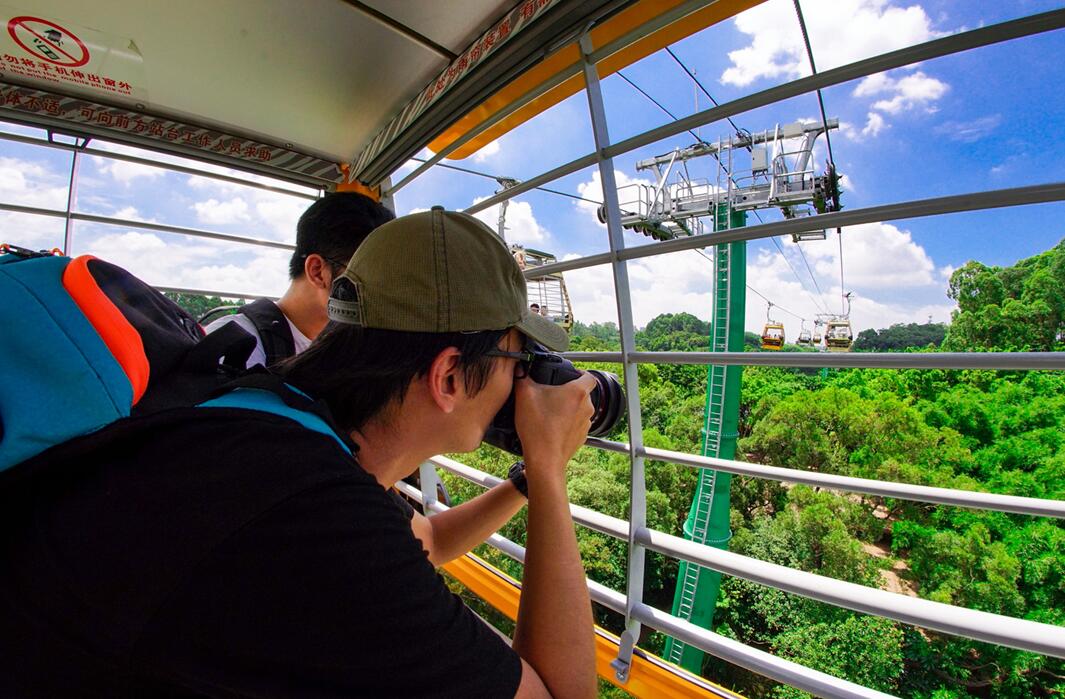 6月28日當天,超過100位攝影師帶上長槍短炮,全副裝備坐上空中纜車,拍出自己鏡頭裏的“長隆十景”。有攝影師表示,東非草原上的動物大種群,從空中纜車拍下去,場面非常壯觀;有攝影師則把鏡頭對准人與動物和諧相處的畫面,“在空中拍動物和動物園,跟平時視角很不一樣。”