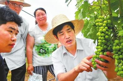 6月19日,陳增喜在南陽市宛城區大山農業科技示范園向果農傳授有機葡萄栽培技術。崔培林攝