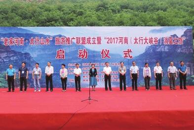 6月24日,由河南省旅游局主導,安陽、鶴壁、新鄉、焦作、濟源五市旅游局(旅發委)共同發起的“老家河南·太行山水”旅游推廣聯盟,在國家5A級景區紅旗渠·太行大峽谷成立。旅游聯盟首屆年會暨“2017河南(太行大峽谷)消夏之旅”同期舉辦。該聯盟的成立和年會的召開,將充分發揮豫北旅游市場的帶動作用,共同打造“老家河南·太行山水”旅游系列產品,促進旅游業轉型升級。