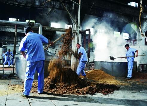 釀造車間釀造班班長朱銀輝表示,發酵中,嚴格控制溫度,管理衛生,保障有益微生物的良好生長環境,使酒醅產生豐富香味成分。