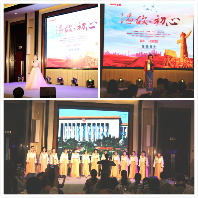 孫為卓誦讀了屠基達院士記事文集《難得幾次飛》選段,樸實真摯的語言沁人肺腑,展現了一代航空人對國防事業的不懈追求和擔當精神;熊貓中國雜志總經理侯曉雲和德國歸僑歌唱家黃靜分別用漢語、德語朗誦了《共產黨宣言》選段,郭月深情並茂朗誦了郭小川詩文《春天的後面不是秋》。活動中,《愛我中華》、《詠梅》、《紅梅贊》、《我愛你中國》等耳熟能詳的經典紅歌餘音繞梁。全場嘉賓一曲《我和我的祖國》,將活動推向了高潮。