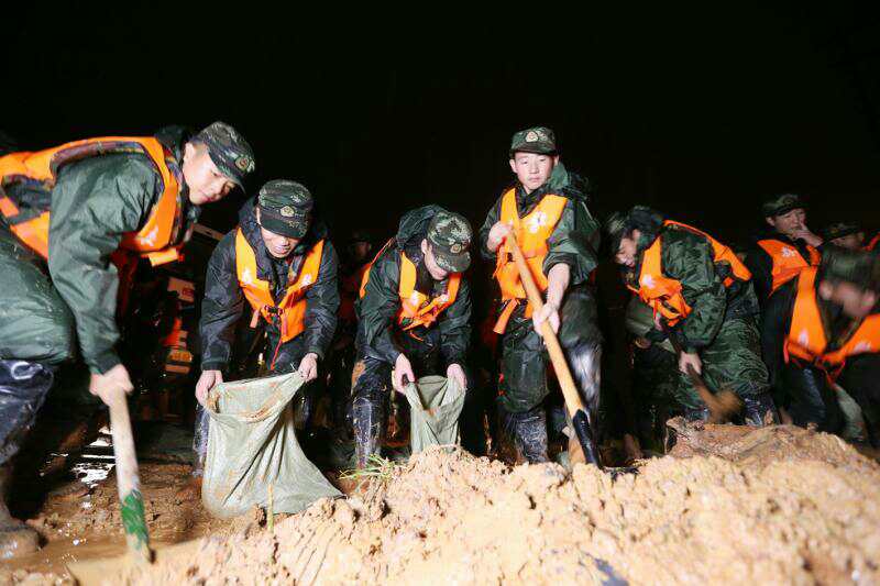 7月2日淩晨1時30分,部隊轉場,開始修築和加固子堤,裝沙、背袋、接力、壘牆有序進行。戰鬥中,洪水持續上漲無法令人歇停,沒有人喊苦叫累,肚子餓了就用雨水混著饅頭充饑,困了就在直接躺在堤壩上稍作調整。