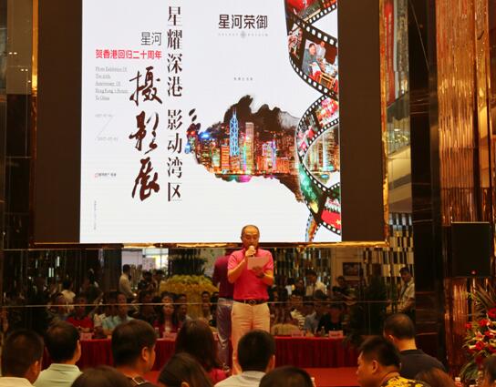 【香港商報網訊】記者何松 吳偉報道 潘宏 吳志雄摄影:2017年7月1日是香港回歸祖國二十周年紀念日,為了慶祝這一偉大日子,習近平主席專程來到香港參與慶典活動。與此同時,7月1日上午,"星耀深港影動灣區"星河賀香港回歸20周年攝影展,在星河榮禦營銷中心開幕。