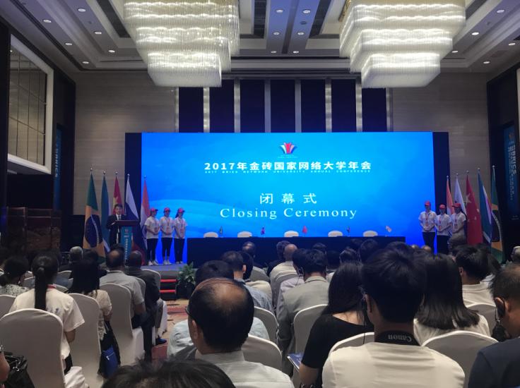 【香港商報網訊】7月3日上午,2017年金磚國家網絡大學年會在鄭州順利閉幕。來自中國、俄羅斯、印度、巴西、南非“金磚五國”的教育部官員、金磚國家網絡大學22所成員高校以及其他高校的校領導和專家學者代表等出席了閉幕式。