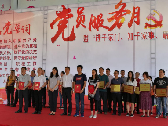 啟動儀式上,吳筠為受表彰的10個先進基層黨組織、35名優秀共產黨員、4名優秀黨務工作者頒獎,並為街道黨員志願者服務隊授旗。周岸標帶領優秀黨員代表重溫入黨誓詞,全體與會黨員在“進千家門、知千家事、解千家難”活動承諾板上簽上鄭重承諾。