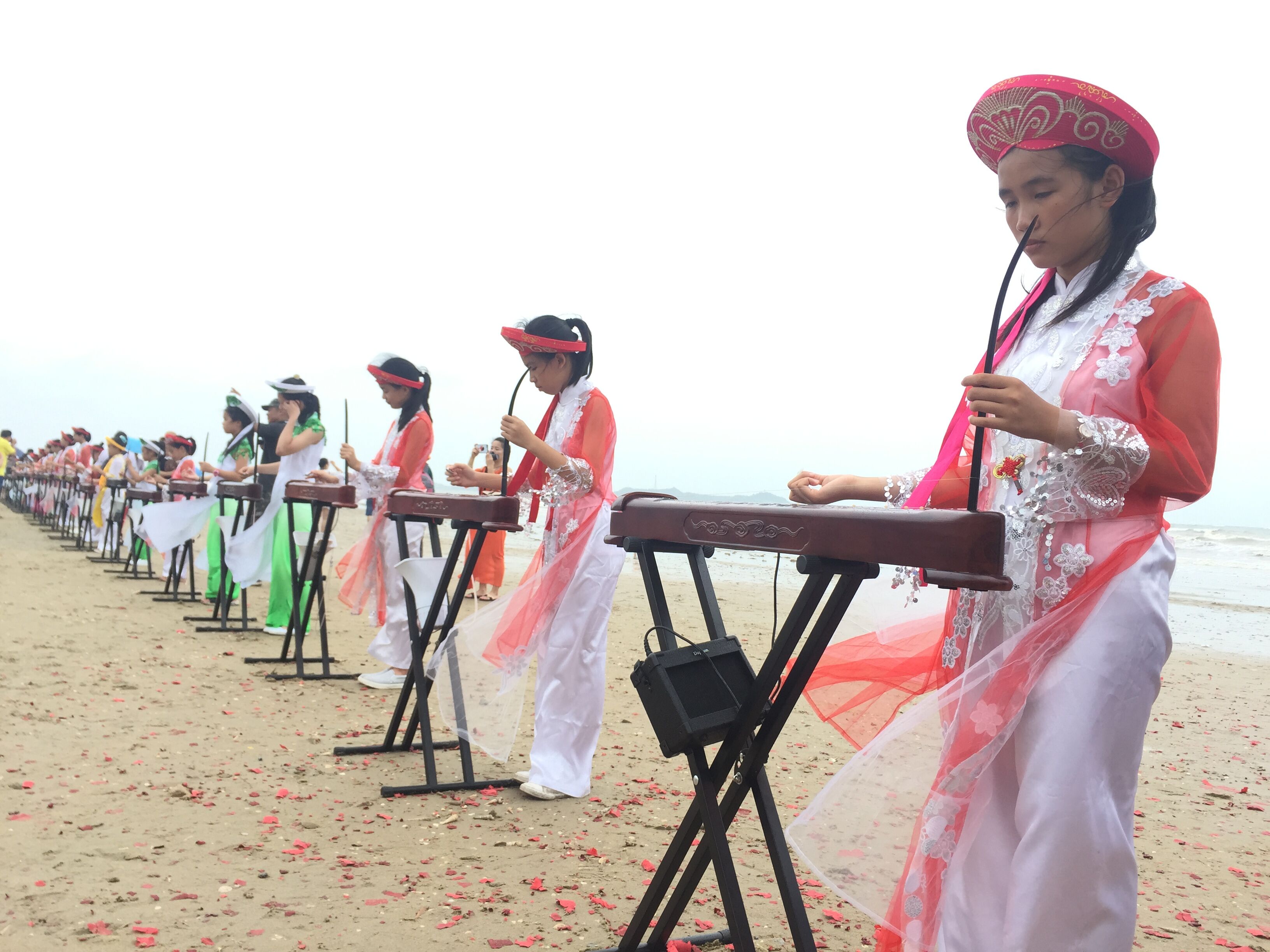 【香港商報网訊】7月2日,防城港金灘顯得格外的熱鬧,許多人們聚集在這裏舉行哈節的迎神儀式。據了解,哈節是京族的一項非物質文化遺產,一年舉辦一次,在此期間,人們還將進行祭神、萬人餐、文藝晚會、山歌會、送神等活動,來自四面八方的遊客和當地京族人民一起參加京族盛事,共享京族最具特色的民俗風情。