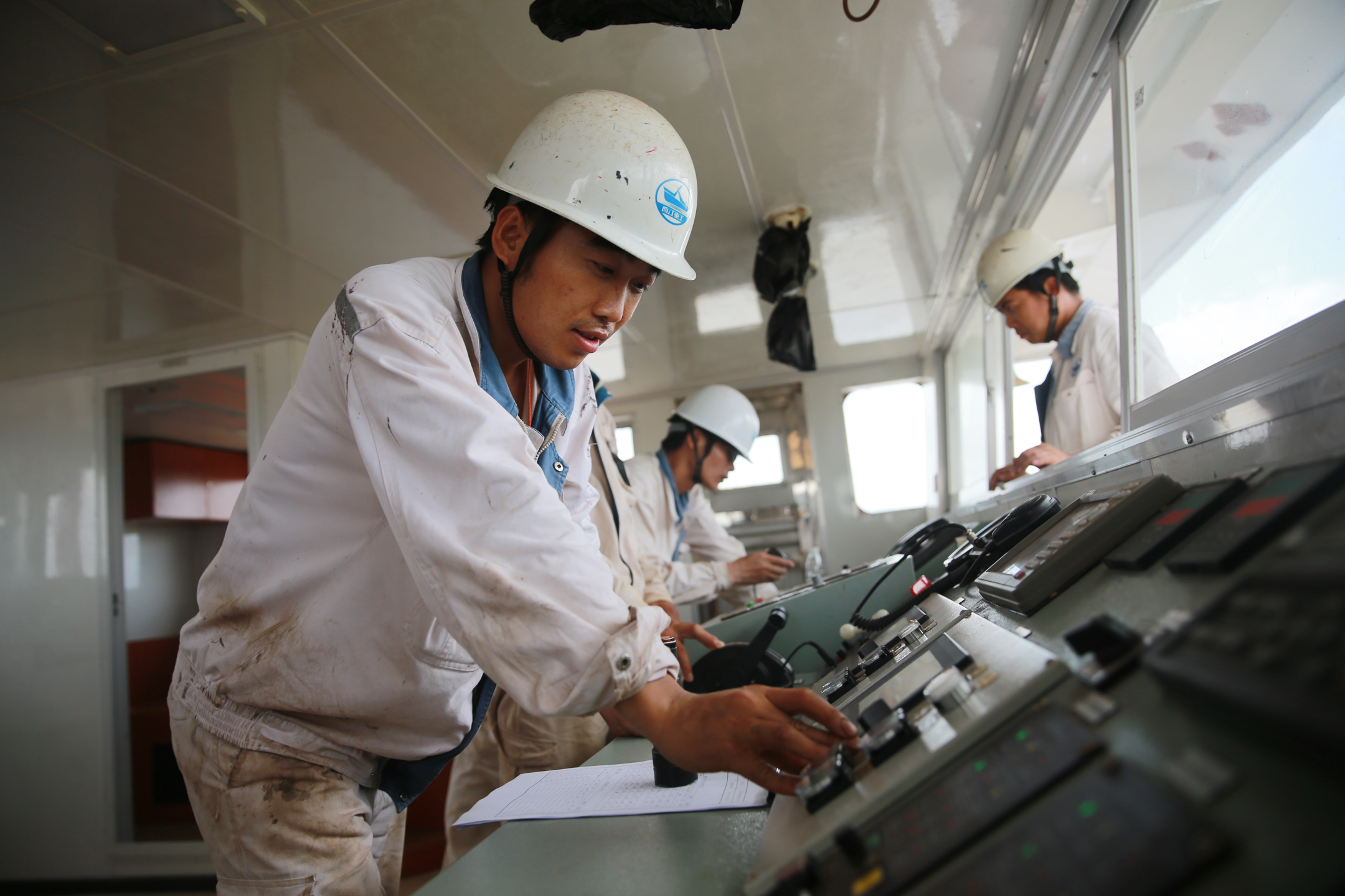7月6日,工人對新建好的貨船進行系泊試驗。曾開宏攝