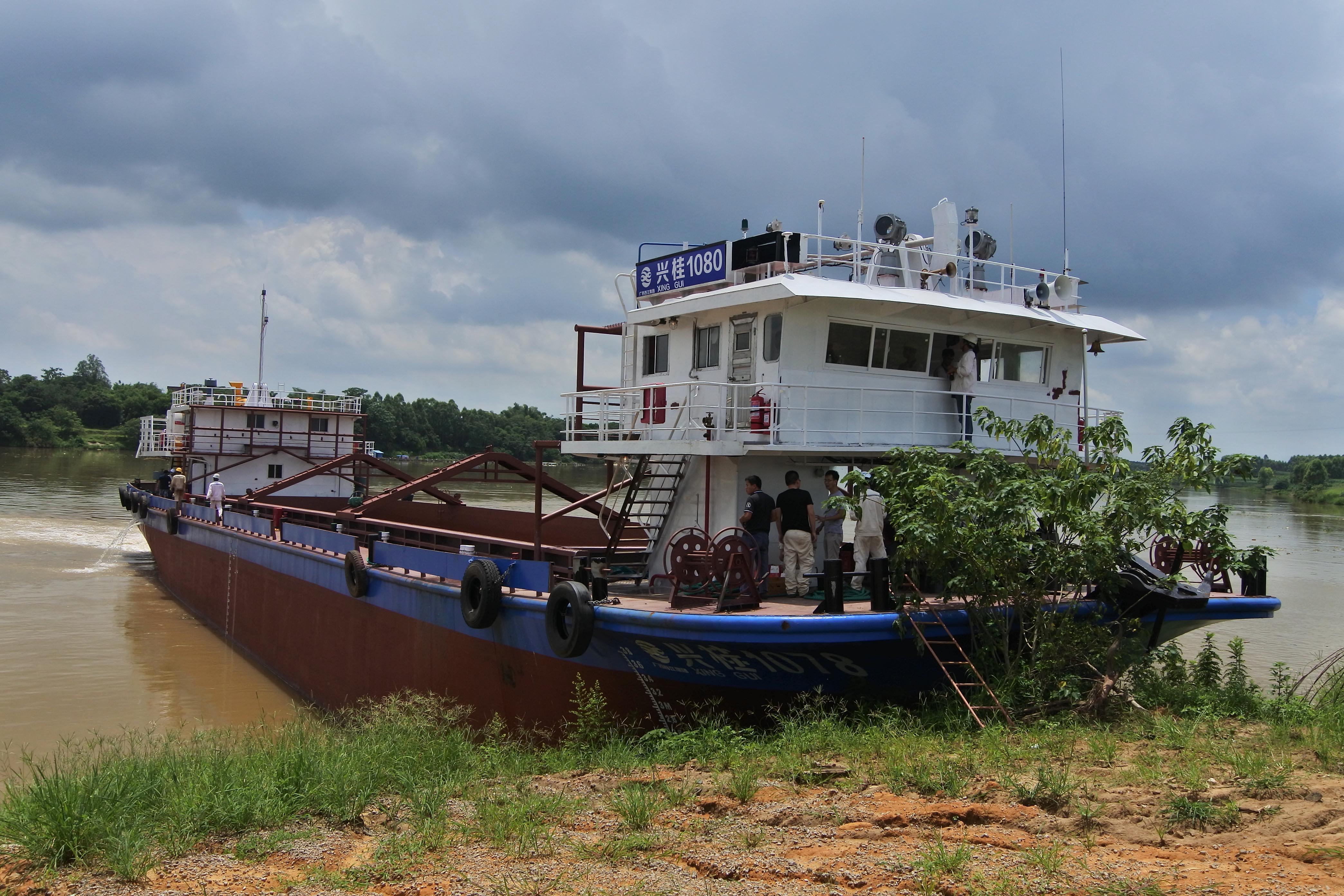7月6日,一艘新建成的貨船停靠在貴港市某造船基地內。曾開和攝。