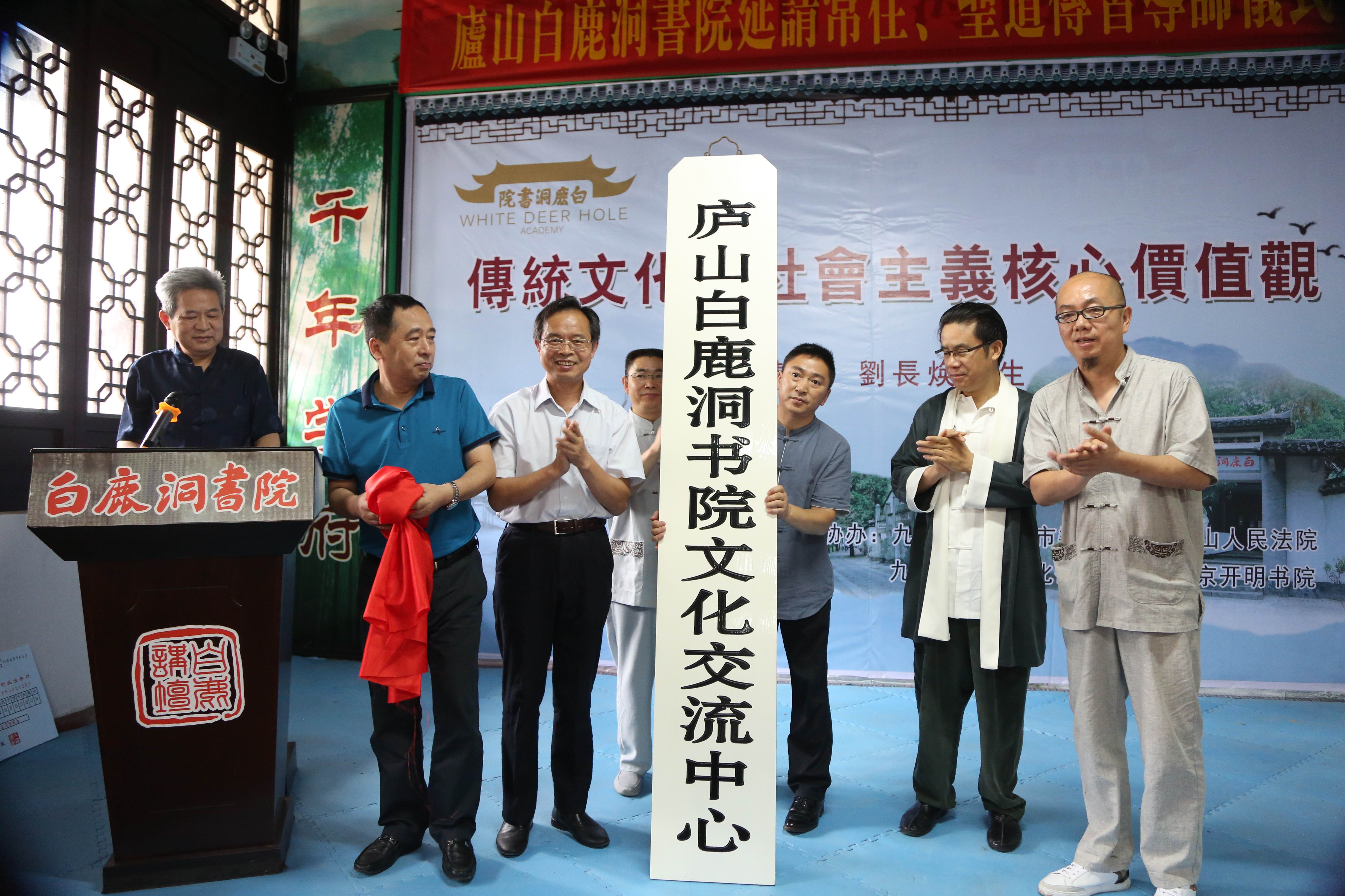 公義講習之前,廬山白鹿洞文化交流中心揭牌。該中心理事長餘靂先生頒發聘任證書給北京開明書院山長劉長煥先生,延請其出任白鹿洞書院常住、聖道傳習導師,主持白鹿洞書院聖道傳習,並開展中華優秀傳統文化學術研究。
