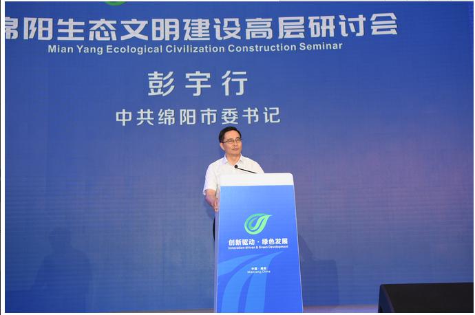 东道主中共绵阳市委书记彭宇行在致辞时说,绵阳是国家科技城,创新驱动、军民融合是绵阳未来发展的重要基础,同时绵阳历史文化底蕴深厚、生态环境优美。特别是近年来,绵阳充分依托良好生态本底,美丽绵阳建设取得阶段性成就,全域开展绿化绵州大行动,打好环境污染防治“三大战役”,推动全域美丽、全民幸福,加快建设国家生态文明先行示范区。这次研讨会传播生态文明理念,分享绿色发展经验,为绵阳加快建设国家科技城和幸福美丽绵阳注入新的动力。衷心希望大家利用这次机会,深入了解绵阳,宣传推介绵阳,与绵阳携手共创经济发展与环境保护互利共赢的美好明天;热切期盼各位专家学者为绵阳把脉问诊、传经送宝,帮助指导绵阳走出一条“创新驱动、绿色发展”协调互促的“绵阳路径”,为建设科技强国和美丽中国作出绵阳贡献。