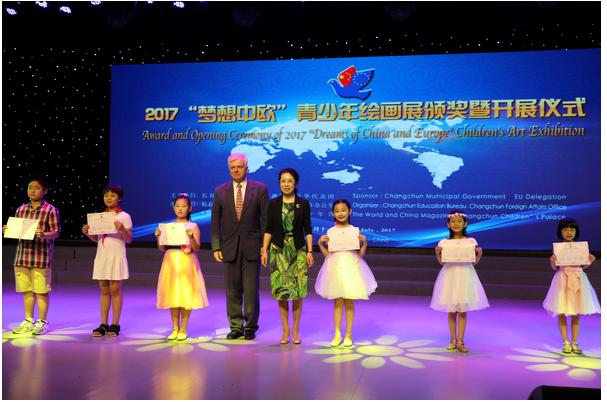 【香港商报网讯】实习记者赵玲报道:11日,为增进长春市与欧洲青少年之间的友谊和相互理解,推动长春市青少年积极参与国际文化艺术交流,加快长春市东北亚区域性中心城市建设步伐,由长春市政府与欧洲联盟驻华代表团共同主办的2017“梦想中欧”青少年绘画展,在长春市少年宫举行颁奖及开展仪式。