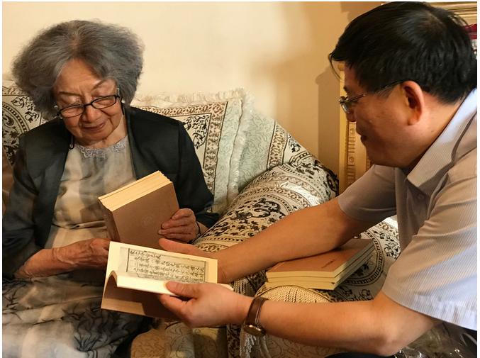 【香港商报网讯】记者邢宝华报道:7月12日,中国国家图书馆馆长、国家古籍保护中心主任韩永进一行来到南开大学西南村,拜访中国古典诗词大家、中央文史研究馆馆员、南开大学文学院中华古典文化研究所所长叶嘉莹教授,并以一套丛书《国学基本典籍丛刊》相赠,以表敬慕之情。