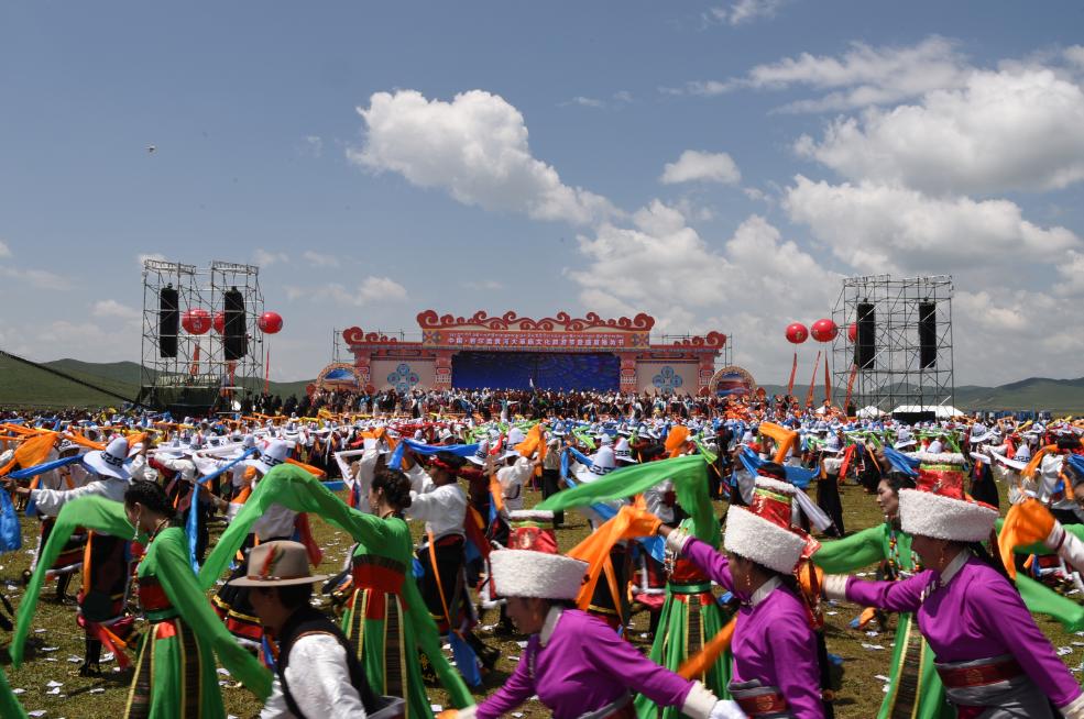 在當天的主會場——紮西塘,只見若爾蓋各族兒女們在這裏載歌載舞,用潔白的哈達、熱烈的舞蹈、歡樂的彈唱,慶祝夏季到來,感恩大自然的恩賜。包括亞東、根呷、澤旺娜姆等在內的眾多藏族演藝明星來到現場助陣,遠道而來的歌手和歸來的遊子們,用他們的歌聲,表達出對家鄉的熱忱和節日祝福。