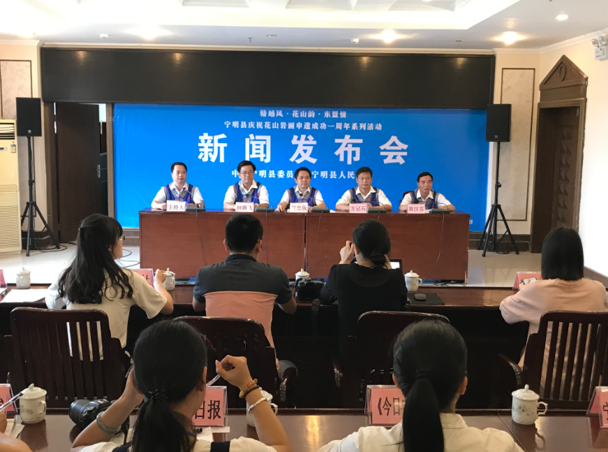【香港商報網訊】記者李依玲、實習記者朱怡蓉報道:7月14日,記者從“駱越風•花山韻•東盟情”寧明縣慶祝花山岩畫申遺成功一周年系列活動新聞發布會上獲悉,2017年寧明花山岩畫申遺成功一周年系列活動將於7月15日起正式上線。本次活動旨在慶祝花山岩畫申遺成功一周年,助推創建廣西特色旅遊名縣,花山景區創國家5A級景區,加快打造花山文化旅遊品牌。