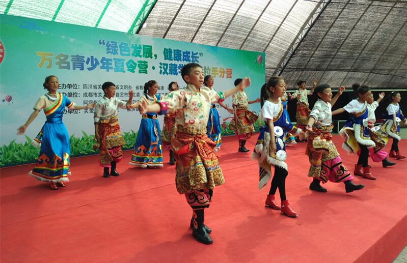 “汉藏学生手拉手”夏令营藏族同学文艺表演。
