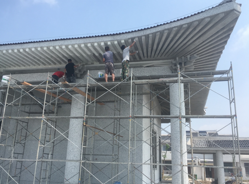 村中祠堂进入最后施工阶段,不少工人就是当地村民