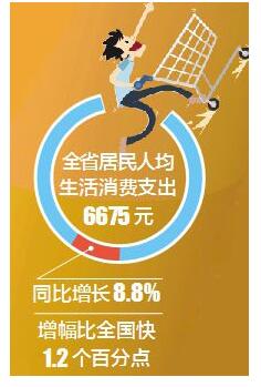 上半年,全省居民用于教育文化娛樂、醫療保健等發展型消費支出增長相對較快,分別增長16.0%、17.3%。此外,用于提升生活質量的享受型服務消費支出增長強勁。