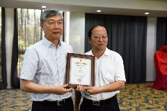 武漢市蔡甸區委書記、中法武漢生態示范城管委會主任劉子清為李培根院士頒發聘書