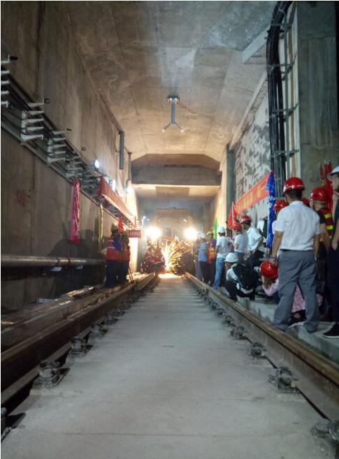 【香港商報網訊】記者黃裕勇報道:7月26日上午,隨著中鐵二局指揮人員的一聲令下,移動焊軌機精准完成對位,伴隨著四處飛濺的電火花,花果山公園至花都廣場區間最後一節軌道完成焊接,廣州地鐵九號線一期宣告全線長軌貫通,為今年年底前開通試運營打下堅實基礎,廣州地鐵宣傳部部長許坤傑表示,廣州地鐵線網裏程將大步邁向400公裏。