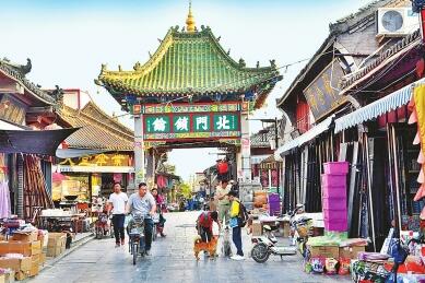 走在濮陽老城,處處可見舊時光留下的痕跡。十字街有個四牌樓,顧名思義,是因掛了四塊匾額而得名,四塊匾額分別是“顓頊遺都”“澶淵舊郡”“河朔保障”“北門鎖匙”。這里可以說是老城里比較熱鬧的商業街了。放眼望去,鋪面林立。在這里,從六百居香腸等老字號到炸雞豬蹄等小吃攤,從海鮮干菜店到日雜百貨店,一應俱全,空氣里飄蕩著的,是辣椒面、香油等各種調料混雜的香氣。