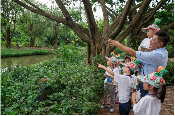 除了新区精彩开放,这个暑期,长隆飞鸟乐园还将同时开放十大科普互动课堂,游客可以零距离接触两栖类动物,同时参与游戏互动赢取印章,还有鸟类专家亲自授课,免费科普讲解。7月21日当天,就有10位小朋友尝鲜成为科普互动课堂的首批幸运学生。鸟类专家告诉他们,全世界的鹤有15种,其中蓑羽鹤是体型最小的一种,简单讲解完以后,专家给孩子们提出了问题,并带着孩子们一起在“仙鹤湾”里观察各种的鹤,寻找答案。最后能正确找到答案的小朋友,可以在“万物有灵、走读自然”的手册上获得一枚印章。