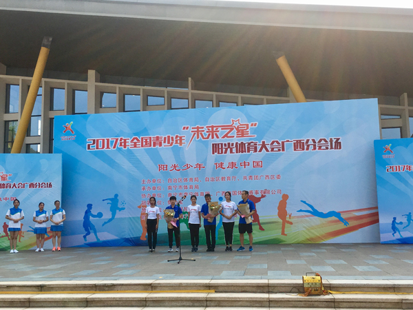 【香港商報網訊】記者歐陽萍報道:7月29日, 2017年全國青少年“未來之星”陽光體育大會(廣西分會場)暨廣西第二屆青少年“未來之星”陽光體育大會在廣西南寧市李寧體育園正式啟動。活動旨在“強化課外體育鍛煉、促進青少年身心健康和體魄強健”,培養青少年健康、文明的生活方式,在廣大青少年中形成熱愛體育、崇尚運動、健康向上的良好風氣,引導青少年學習體育明星熱愛祖國、胸懷大志、勇於拼搏、追求卓越的體育精神。
