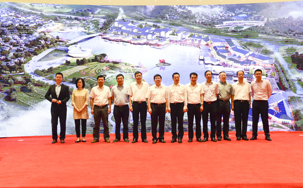 黄山市委书记任泽锋(左六),市委副书记、市长、黄山风景区管委会主任孔晓宏(右五)出席东黄山国际小镇建设启动大会件