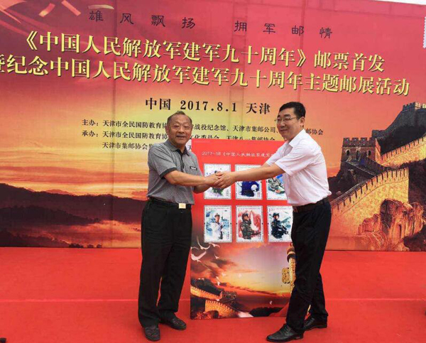 为配合纪念邮票的发行,天津市集邮公司今日在平津战役纪念馆举行了《纪念中国人民解放军建军九十周年》邮票首发暨纪念建军九十周年主题邮展。以方寸为载体,用邮展这一特殊形式隆重庆祝建军节,展示中国人民解放军走过的90年的光辉历程,弘扬我党我军的光荣传统和优良作风,受到天津市民的欢迎。