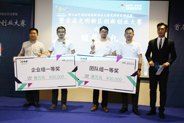 最终,来自小墨热管理材料(深圳)有限公司的硅时代的芯片降温灵药项目和光原创新科技的光原科技项目分别获得光明新区企业组和团队组第一名,并于现场获得了奖杯与奖金3万元人民币的奖励。光明新区将按照比分排名推荐19家企业,12支团队代表新区继续参加「第九届中国深圳创新创业大赛」的后续比赛。