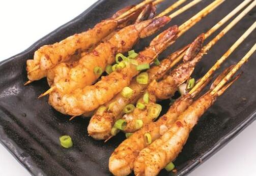 這種做法非常考驗師傅的功力,少了傳統燒烤反復刷料的過程,一次成型,這樣烤出來的基圍蝦鮮香入味,嫩滑彈牙,一串一蝦,吃得讓人停不下來嘴。