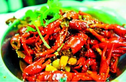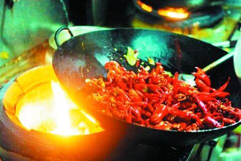 掛著“潿潿鮮魚”的招牌,最出名的卻是小龍蝦。這家店不請師傅,老板自己掌勺,饞嘴大蝦是店里的招牌。傍晚,老板最忙碌,四口大鐵鍋一字排開,爐火正旺,大料爆香,洗凈的小龍蝦入鍋,和別家最不一樣的是老板的殺手锏——一瓢骨湯、一把番茄片,再加秘制醬料和一勺花生醬。