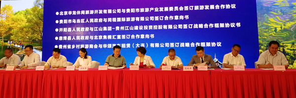 【香港商報網訊】記者黃慶松報道:8月4日,2017「爽游貴陽」避暑度假旅遊產品暨北京旅遊招商推介會在北京舉行。貴陽市分別與江山集團、北京華龍休閒旅遊開發有限公司、康輝文旅集團等簽約9個旅遊項目,總投資為60個億。