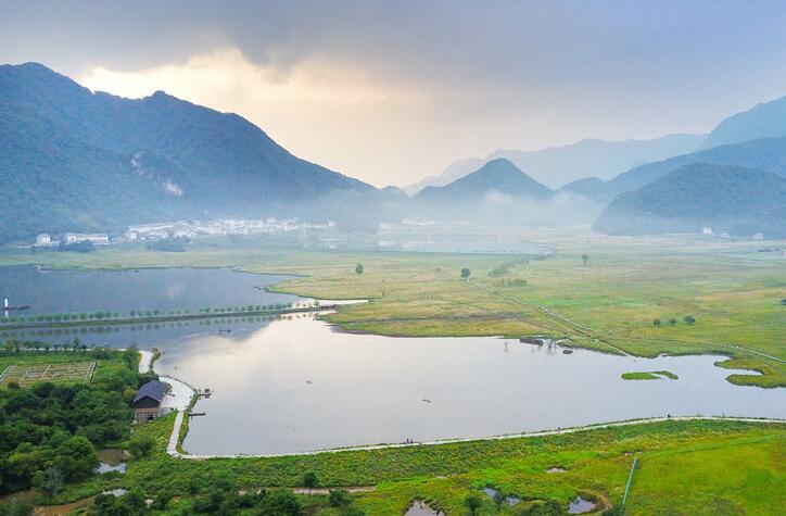神農架大九湖景區海拔1700m,南北長約15km,東西寬約3km,被稱為“神農江南”。大九湖四周高山環繞,最高峰2800m,形成一道天然屏障。在大九湖東西有9個大山梁,梁上森林密布,氣勢雄偉。山梁間九條小溪猶如九條玉帶從云霧中飄舞下來,在這高山盆地上形成一個個小湖泊。大九湖具有亞高山地域美麗的湖光山色,其泥炭蘚沼澤濕地及其大片的濕原草甸具有獨特性、稀有性與典型性,讓無數游人流連忘返。