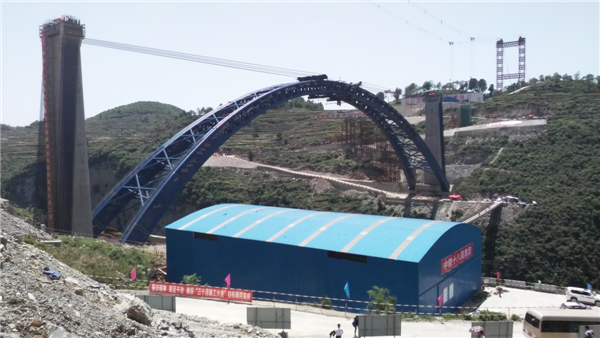 据了解,西溪河大桥位于贵州省毕节市大方县与黔西县交界处,于2014年动工,是成贵高铁全线“四桥十三隧”重难点工程之一,也是我国高铁建设中首座钢管混凝土转体拱桥。大桥全长493.6米,跨越深260米的西溪河峡谷,桥面至谷底深度260米,最高桥墩60米,采用跨度为240米的上承式钢管混凝土拱桥新结构,这是中国高铁同类型桥梁的最大跨度,并在国内高铁桥梁建设中创新采用了“连续拖拉式桥梁顶推”技术。