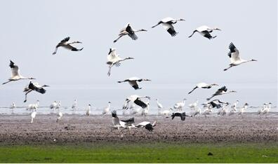 白鶴在吳城越冬。本報記者 燕 平攝