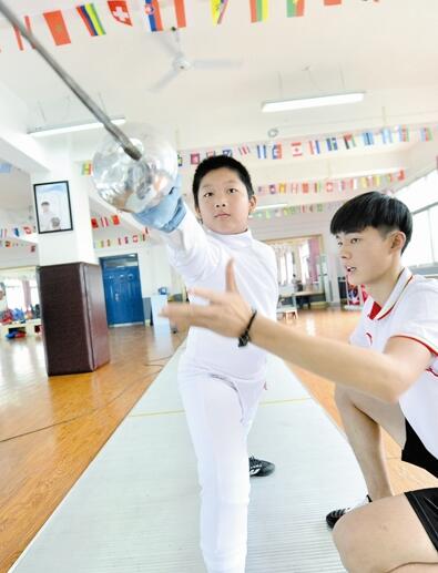 新余學院附屬小學多功能教室內,小劍客們身著擊劍服,戴著防護面罩,手持佩劍,在職業教練帶領下練習擊劍。暑假期間,該校引入的特色擊劍運動項目吸引了眾多學生參加。本報記者 楊繼紅攝