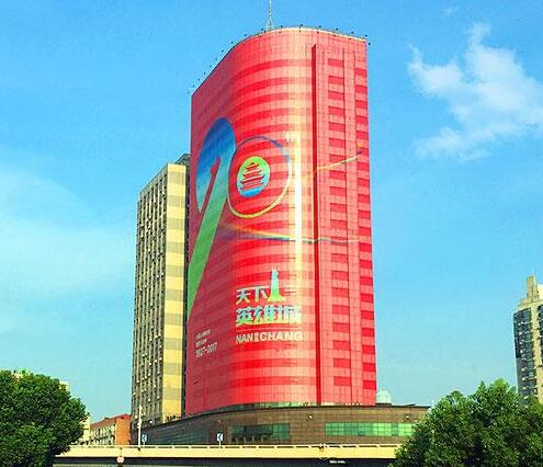 6日下午,南昌八一大橋上,不少行人拿著手機對著橋頭的一座大廈拍照。原來,該大廈外立面已“披上”了一件紅色的巨幅彩繪外衣,在陽光下格外鮮艷。為紀念八一南昌起義暨中國人民解放軍建軍90周年,這樣的主題彩繪已遍布英雄城。