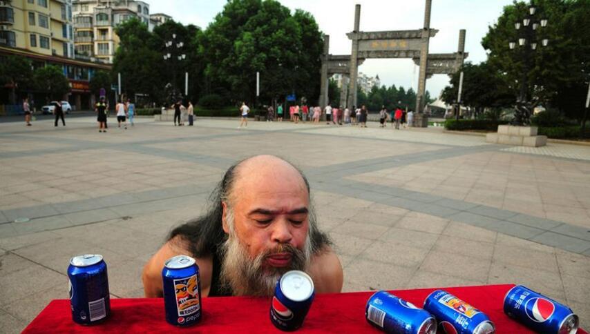 8月8日,江西省萬載縣康樂街道市民陳龍在練習“嘴吹水瓶”絕技。陳龍多年來堅持練習武術、負重俯臥撐、硬氣功等健身運動,他能在45秒鐘內用嘴吹倒90瓶礦泉水。8月8日是“全民健身日”,各地有不少身懷“絕技”的健身達人,他們用自己獨特的方式強身健體,樂在其中。我們展示他們的“絕技”不是供大家模仿,相反,每個人要根據自身具體情況,科學健身。 新華社發(鄧龍華 攝)