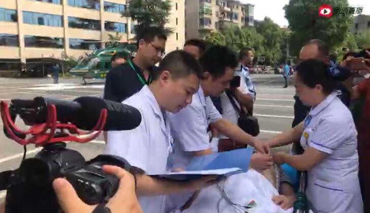 10:20 病患順利抵達長沙,湖南省人民醫院馬王堆分院將患者從直升機轉送入病房……