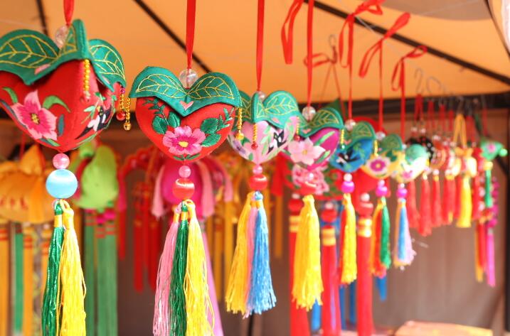 除了香包,戲劇頭帽制作、皮影雕刻、剪紙、泥塑以及蛋雕等都逐步發展形成了較為完善的產業鏈,成為當地吸引游客、帶動農民脫貧致富的支柱產業。