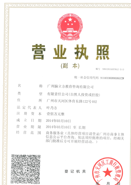 「廣州腦立方公司成立3年多來,主要經營語文及英語課本背誦、數理化公式背誦及初中主要科目考點背誦等培訓項目。從未開展過類似上海那家『蒙眼能辨色』、『七天成詩人』等培訓。」葉先生向記者訴苦:「廣州腦立方公司與上海那家腦立方公司沒有任何關係,屬工商註冊異地重名。媒體也未從未採訪過我們,就將廣州腦立方與上海那家掛鉤,實屬嚴重誤導,將採取必要手段維權,還公司清白。」