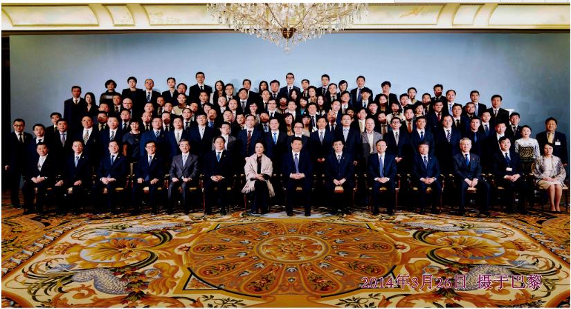 2014年3月,国家主席习近平访法期间,TTF董事长吴峰华(二排左一)作为随团访法的唯一一个文化创意类企业家与国家主席习近平等合影留念。
