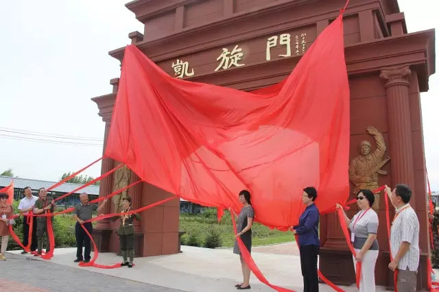 黑龍江省委宣傳部部務委員李紅等參會代表為“凱旋門”揭幕(右四)